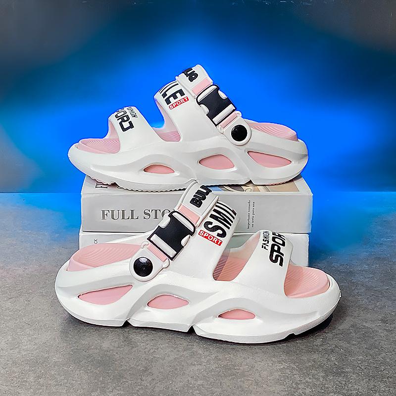 Летние мужские и женские односложные модные принтованные буквы с удобным двухцветным дном, повседневные пляжные сандалии из eva для отдыха на открытом воздухе