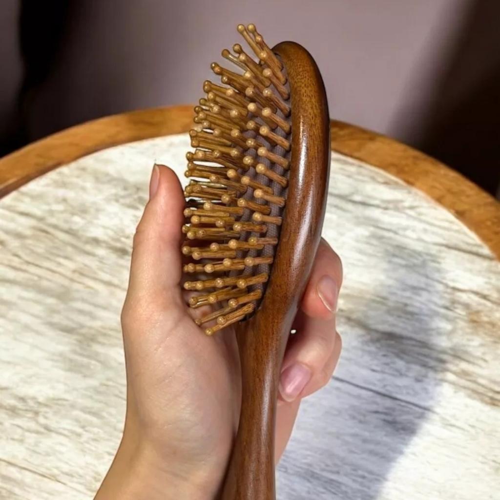 Щетка для роста волос, натуральная сандаловая распутывающая деревянная щетка для массажа кожи головы, для женщин, мужчин и детей, с эргономичной ручкой