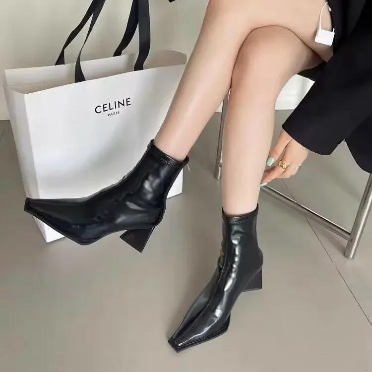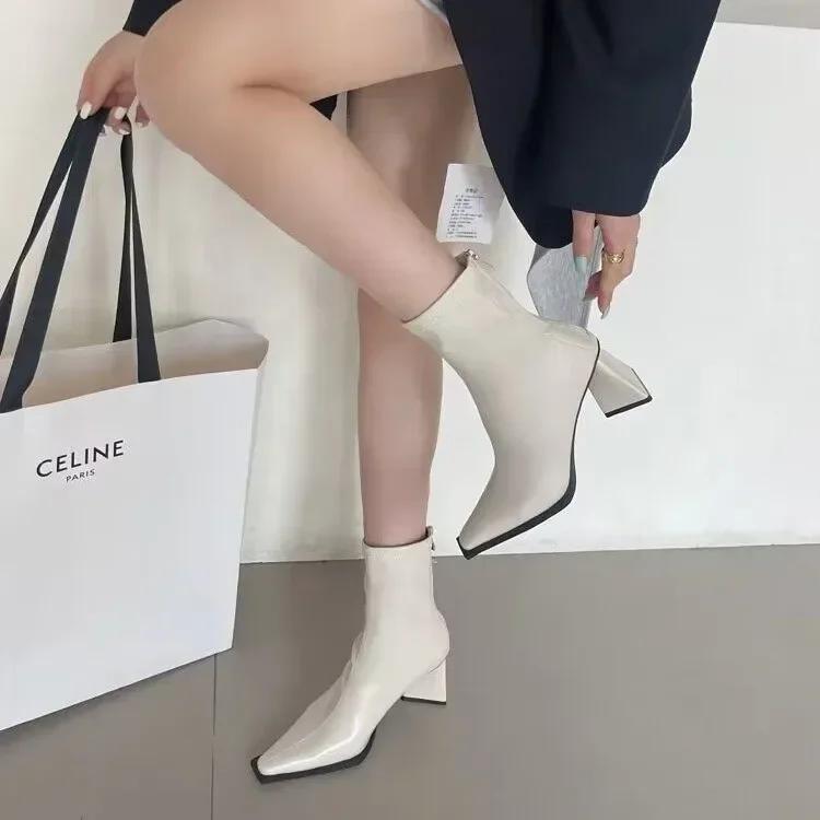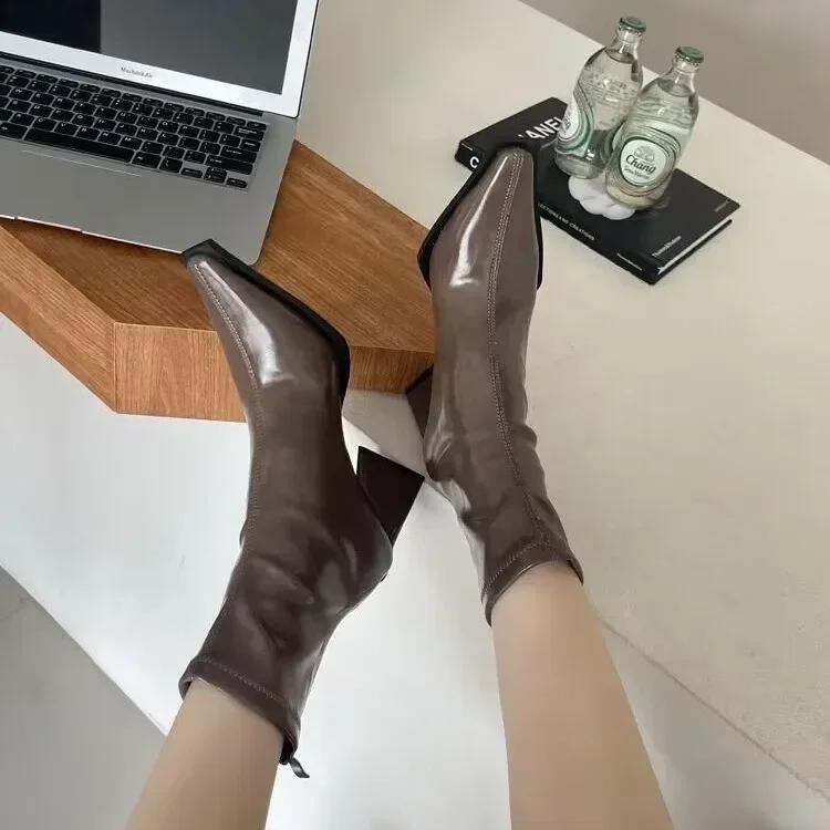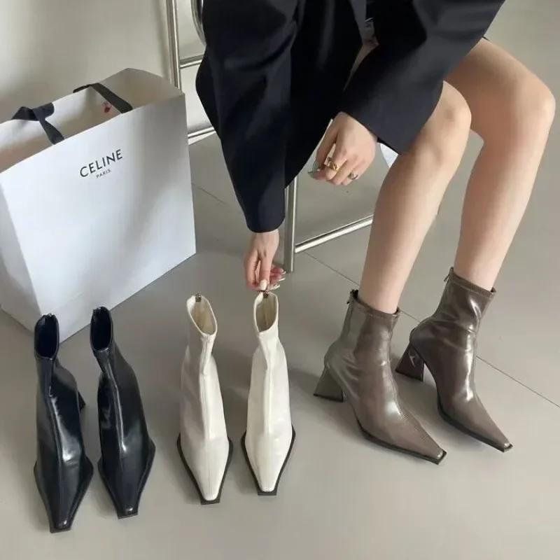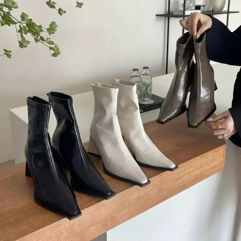 Осенне-зимние женские ботильоны, модные элегантные туфли с застежкой-молнией и острым носком, толстые каблуки, узкие короткие ботильоны, женские
