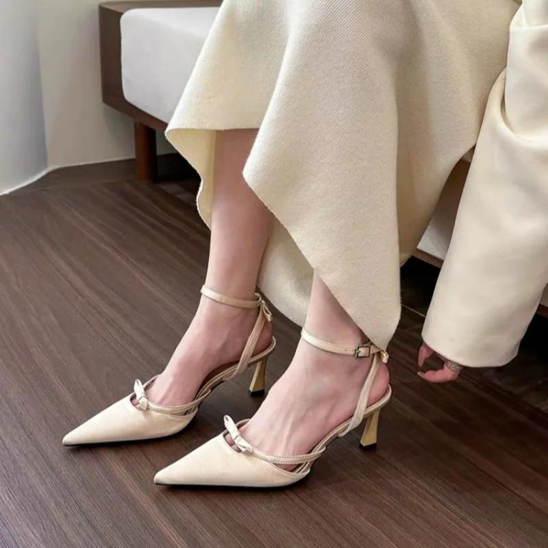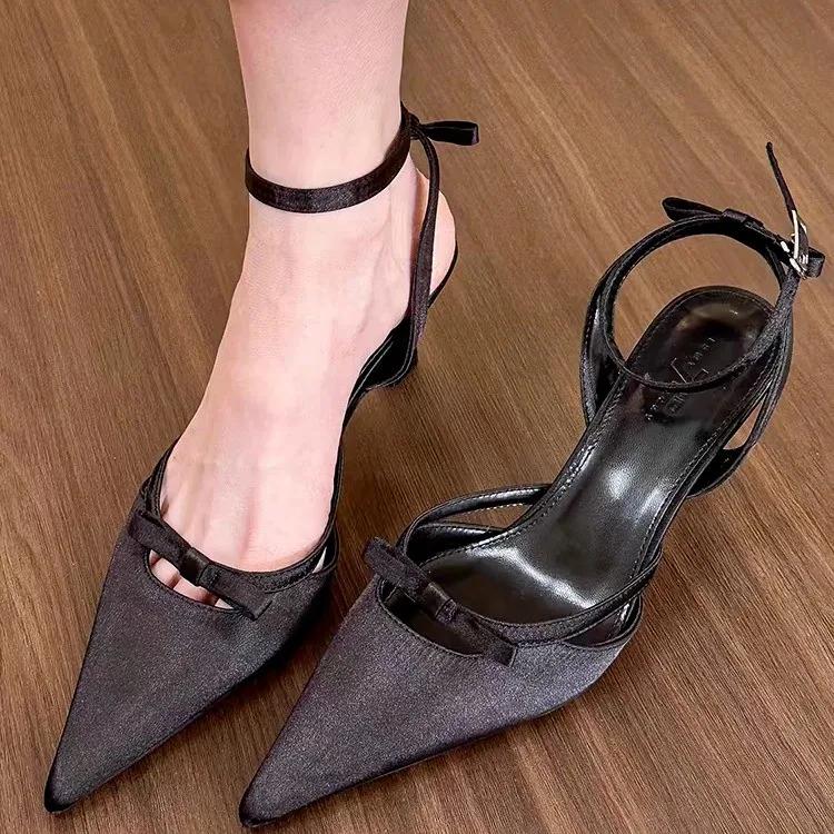 Модные босоножки с острым носком, женские туфли на высоком каблуке, летние тапочки, сексуальное платье с бантом, свадебные туфли-лодочки с открытой пяткой, женские туфли-лодочки Zapatillas