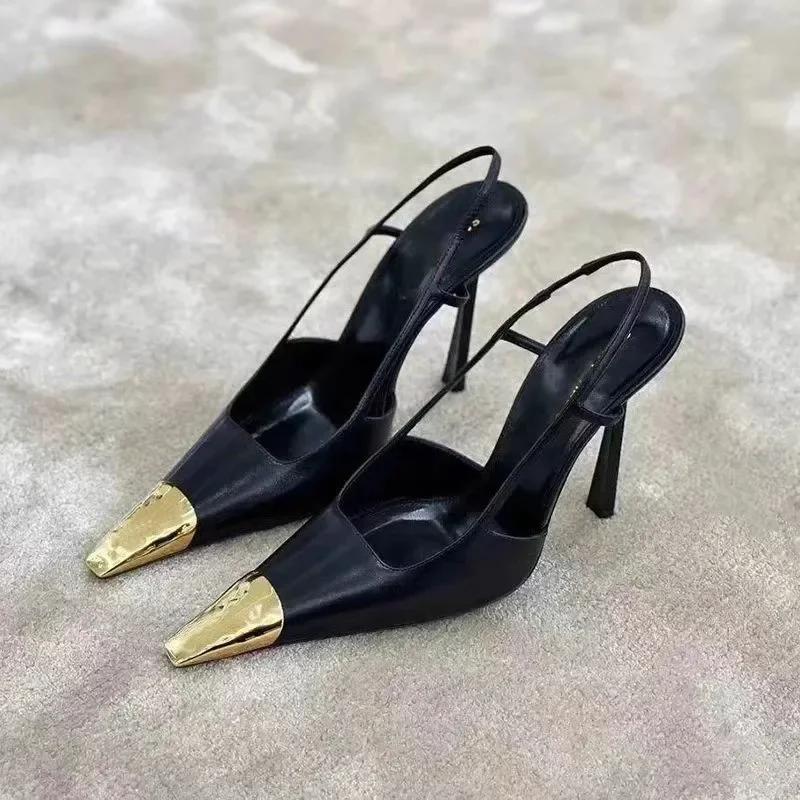 Женские туфли на высоком каблуке с острым носком, элегантные босоножки, туфли-лодочки с открытой пяткой, модные туфли-лодочки для вечеринок, шлепанцы, брендовые женские шлепанцы, дизайнерские