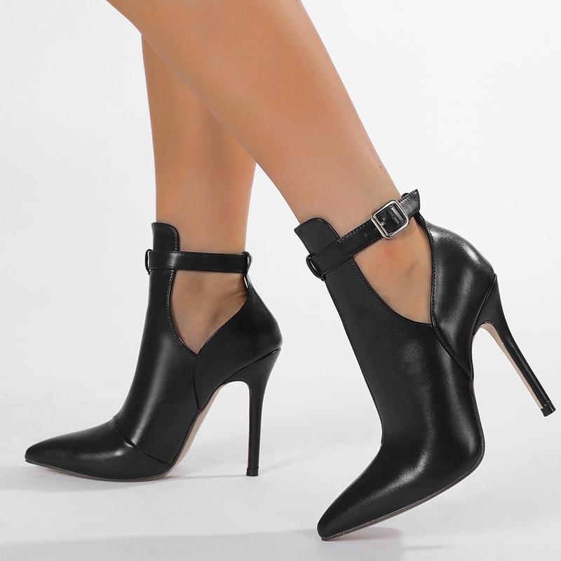 Сапоги женские остроконечные с полой пряжкой на ремне на высоком каблуке сексуальные короткие сапоги Bottes Femme