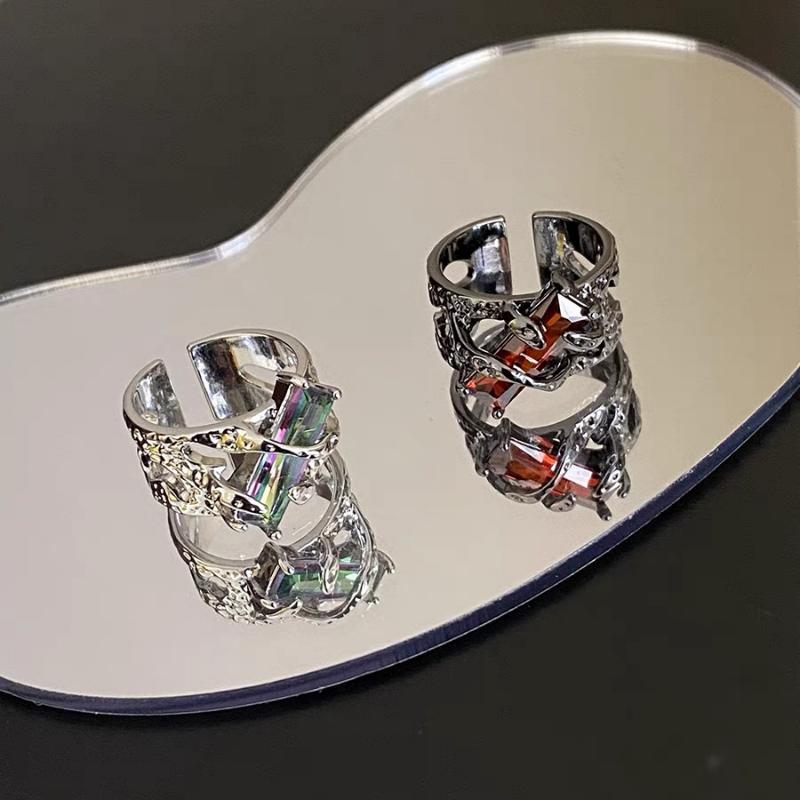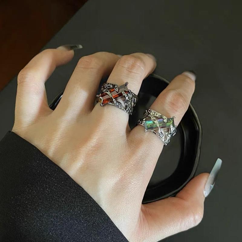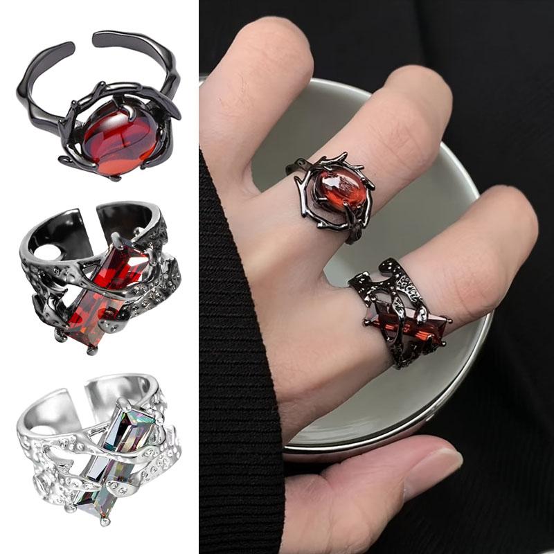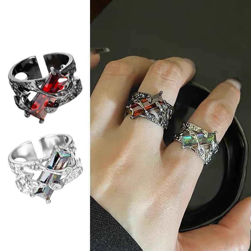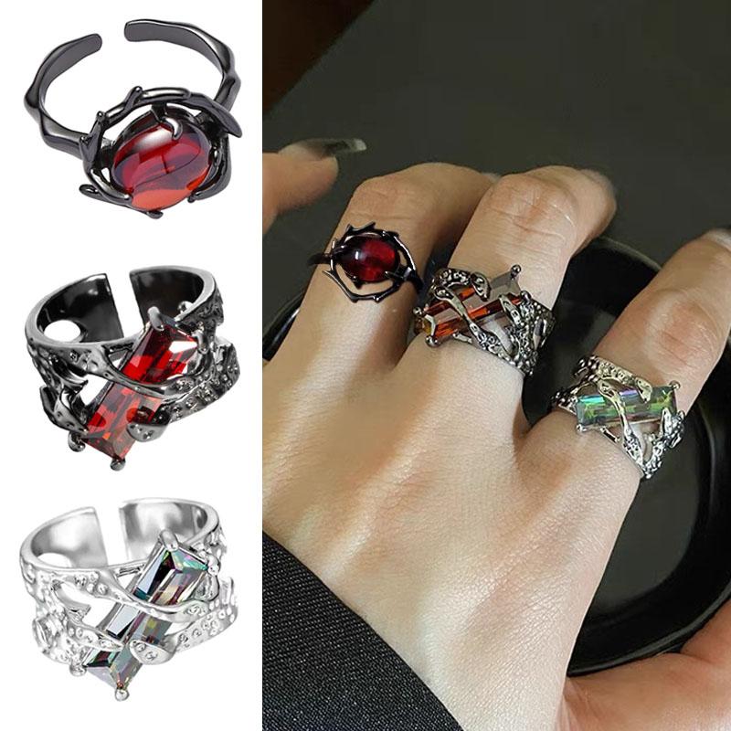Новые шикарные регулируемые открывающиеся хрустальные стеклянные эстетические кольца для женщин готическое неправильное сердце вечеринка палец кольцо креативные ювелирные подарки
