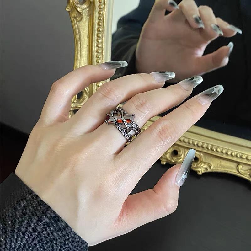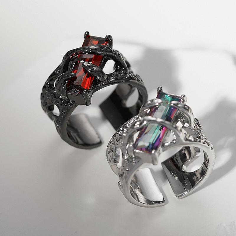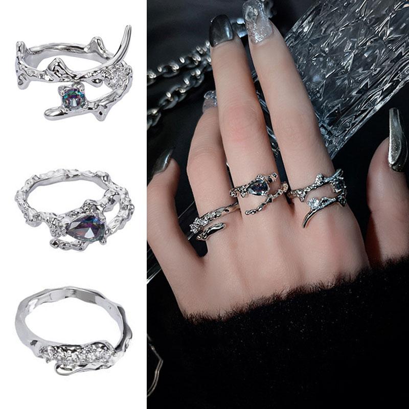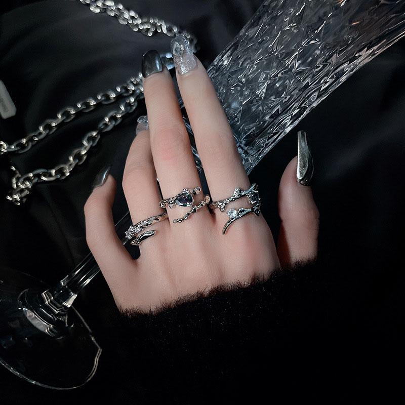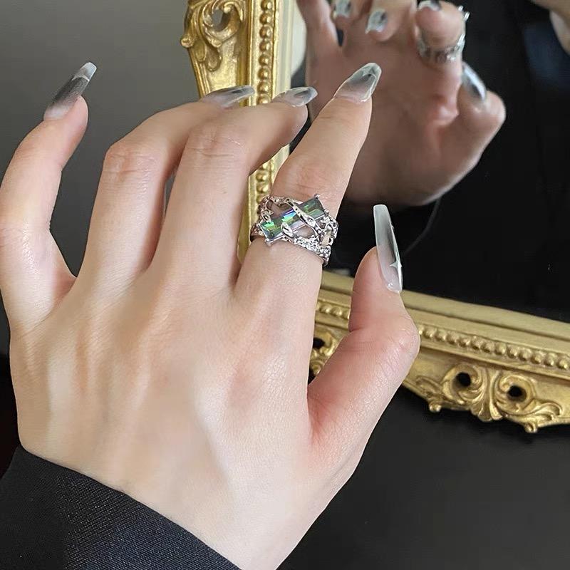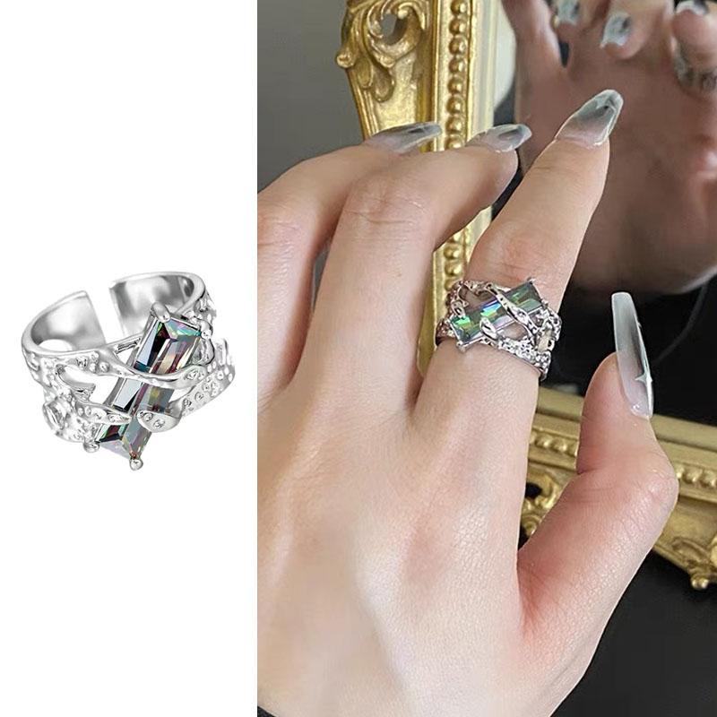 Новые шикарные регулируемые открывающиеся хрустальные стеклянные эстетические кольца для женщин готическое неправильное сердце вечеринка палец кольцо креативные ювелирные подарки