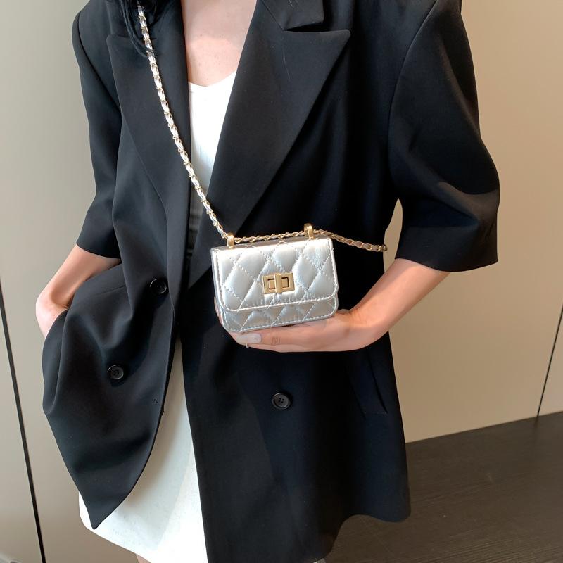 Маленькая квадратная сумка с цепочкой из сплошного цвета с бриллиантами, новая модная сумка через плечо, простая и модная женская сумка через плечо