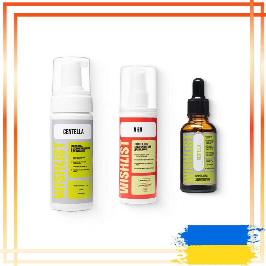 - Сыворотка с центеллой WiSHLiST CENTELLA SERUM, 30 мл — оказывает успокаивающее действие, восстанавливает кожный барьер и снимает воспаления. Интенсивно увлажняет кожу, уменьшает покраснение и стимулирует естественные процессы заживления.
