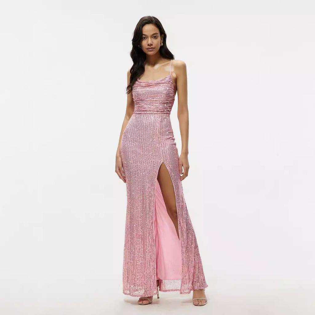 Новое весенне-летнее платье без рукавов с подтяжками, облегающее платье с запахом на бедрах, расшитое пайетками — купить товар онлайн с бесплатной доставкой до всему миру!
