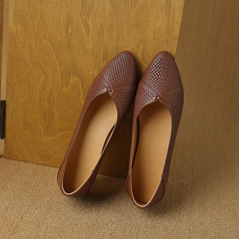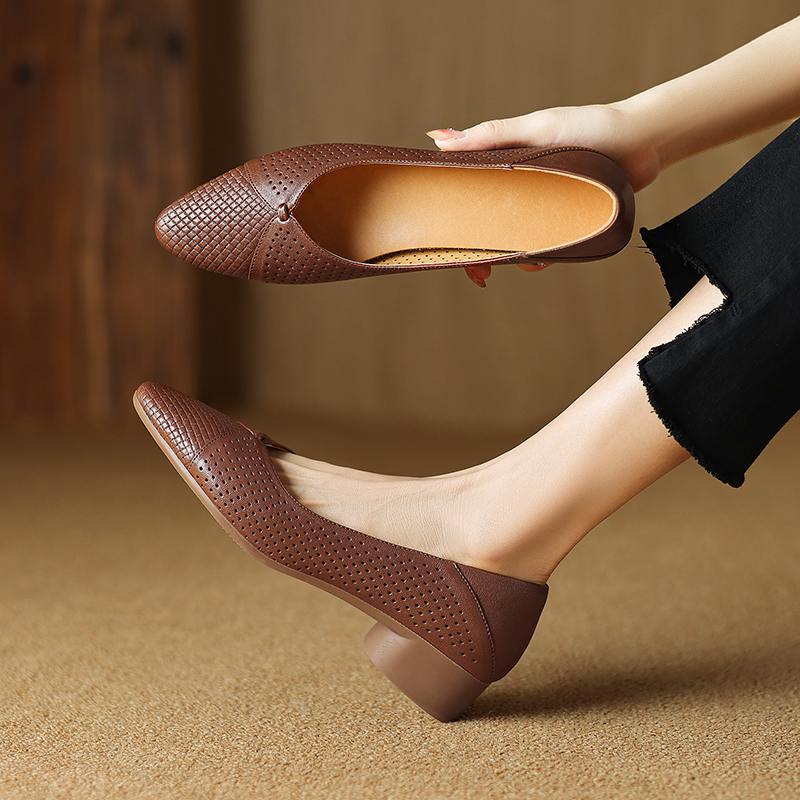 Krazing Pot Овчина весна лето размер 41 толстый низкий каблук женские заостренный носок полые украшения дышащие туфли без застежек