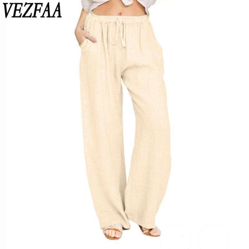 VEZFAA Женские модные повседневные однотонные брюки с высокой талией и принтом, брюки и капри