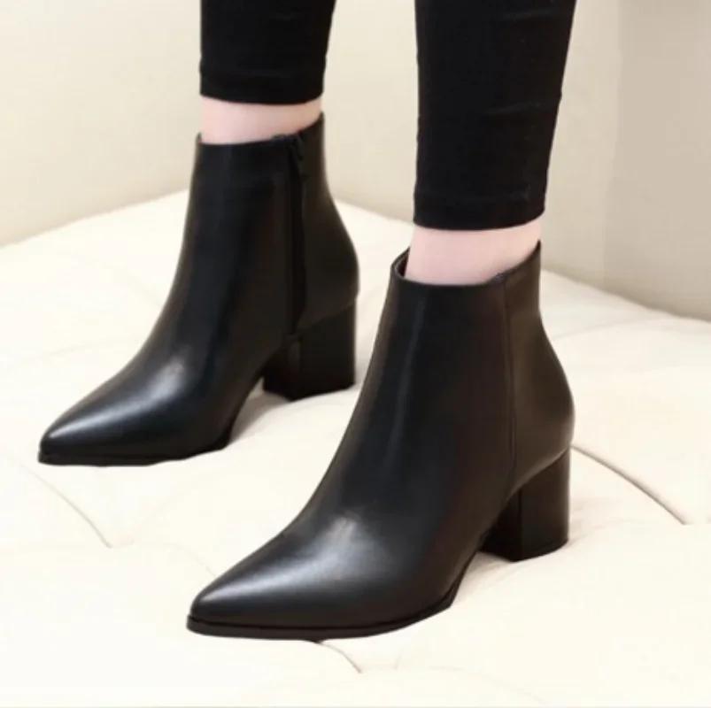 Модные женские ботинки на молнии, зимние ботильоны, остроносые толстые каблуки, кроссовки, снегоступы — купить товар онлайн с бесплатной доставкой по всему миру!