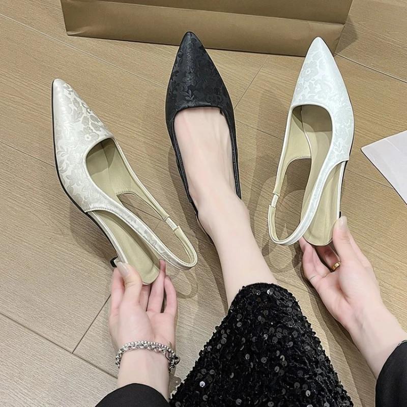 Женская летняя обувь Новые туфли на низком каблуке с открытой пяткой для женщин Модные туфли-лодочки с острым тонким каблуком Туфли-лодочки с открытым носком Босоножки