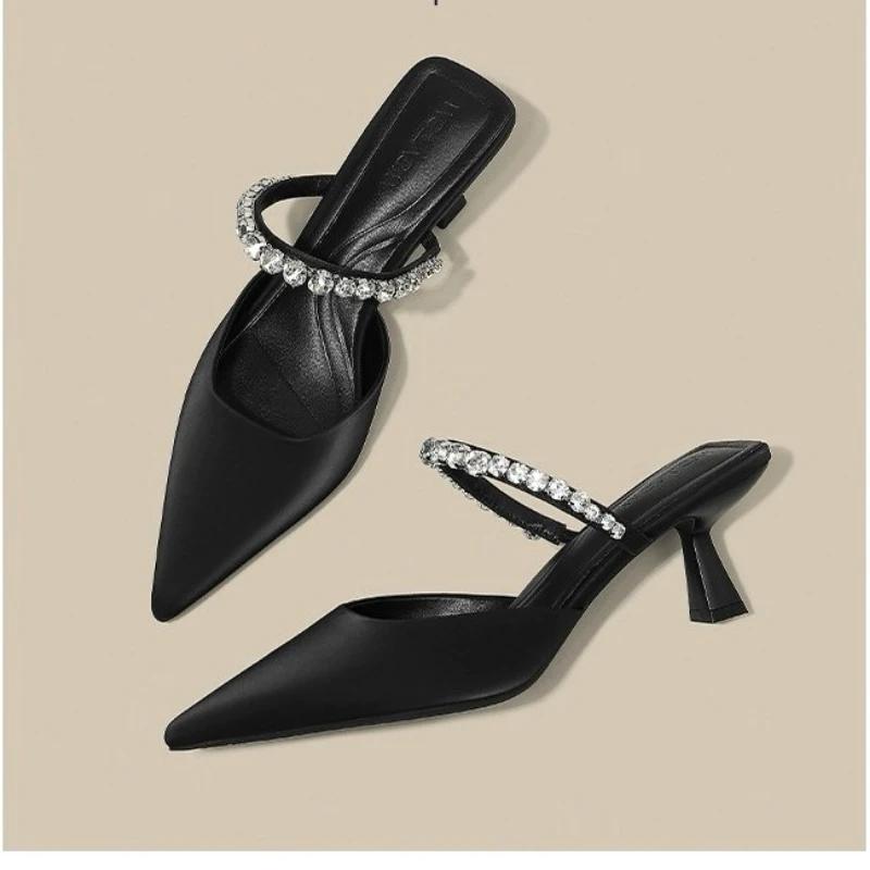 Туфли на высоком каблуке со стразами, женские черные туфли-лодочки, элегантные современные босоножки на каблуке, остроносые туфли-шпильки для вечеринок