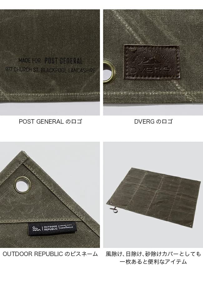 DVERG x POSTGENERAL Doberg x Post General Ground Sheet L Khaki Waxed Canvas 141cm x 98cm Foldable Sheet Approx. Multi-Purpose