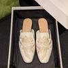 Новые вышитые полутапочки женские туфли новые Baotou Flower ретро плоские модные сандалии с квадратным носком женские повседневные мюли
