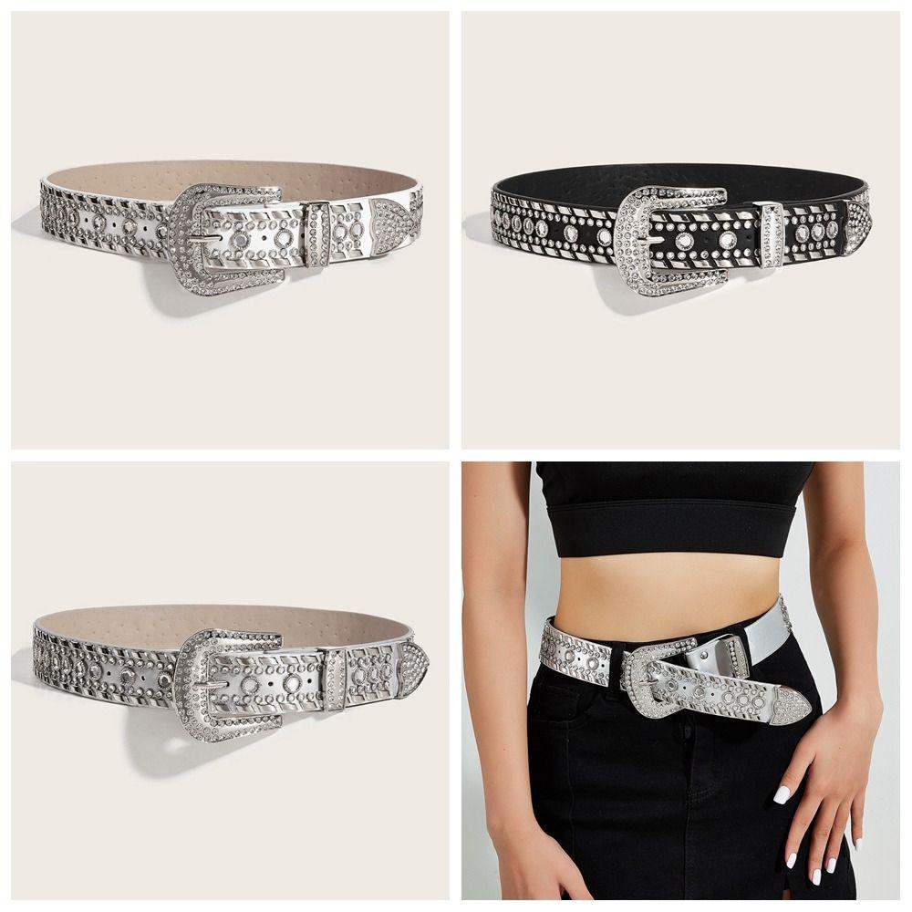 Металлическая пряжка Y2k Стразы ремень Корейский стиль кожаный ремень Декоративные джинсы