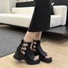 Сандалии на платформе с высоким берцем, женские, ретро, с открытым носком, с пряжкой на ремне, с полой подошвой, толстой подошвой, с молнией сзади, в римском стиле
