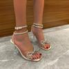 Сексуальные женские босоножки с бабочкой и стразами, прозрачные, на высоком каблуке, летние, с пряжкой на щиколотке, для вечеринок