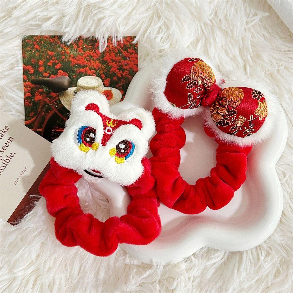 Новогодняя резинка для волос «Танец льва» Красная веревка для волос Новогодний детский головной убор Уникальный детский