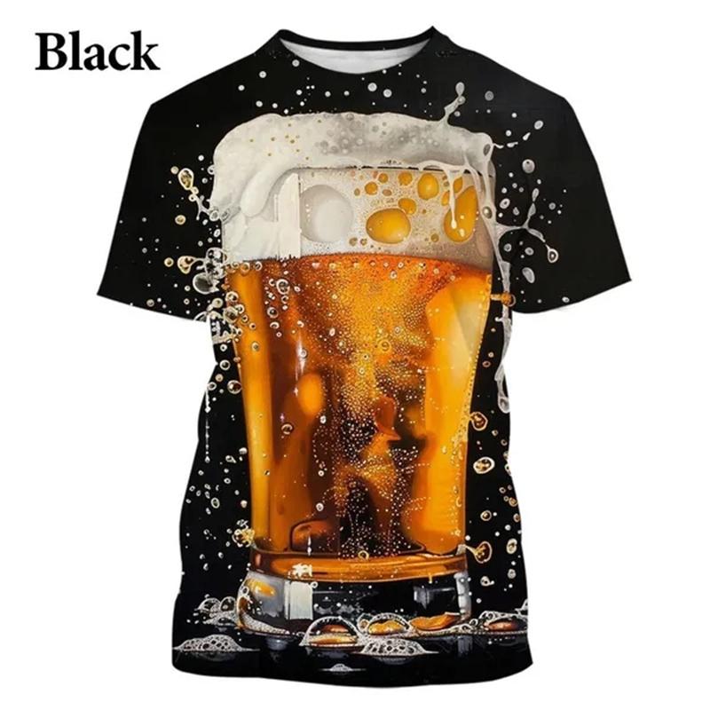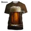 Мужская классическая футболка с принтом пива на 3D-принтере, малиновые летние футболки Harajuku с круглым вырезом и короткими рукавами