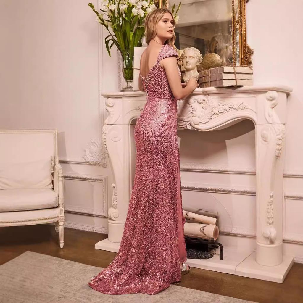 2025 новое розовое платье с пайетками, сверкающее платье из бисера, женское вечернее платье высокого класса