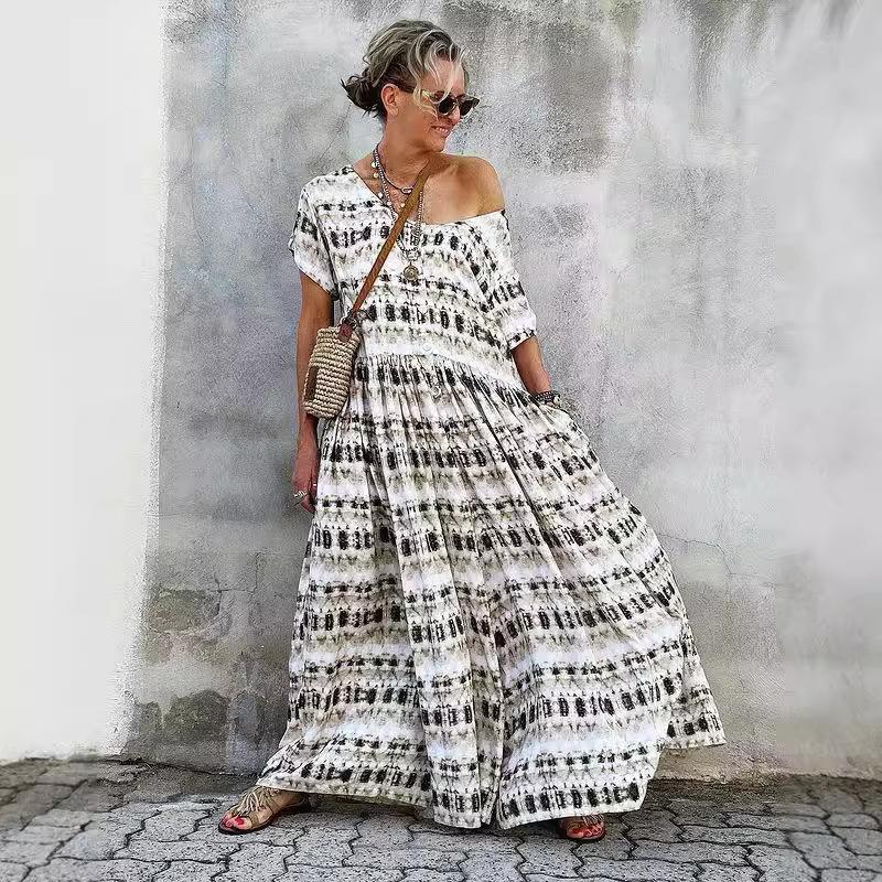 2025 весна-лето новое женское платье с короткими рукавами пляжное платье