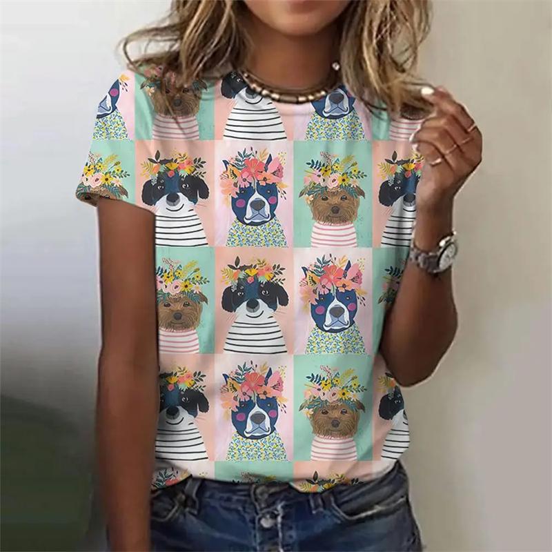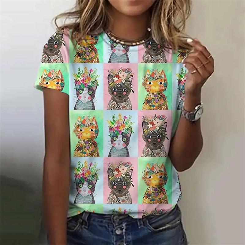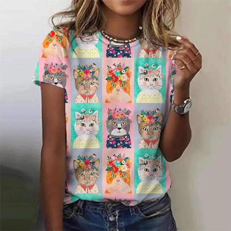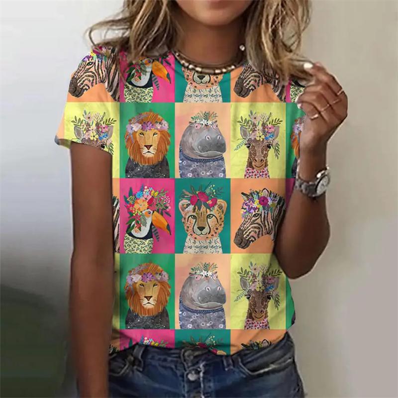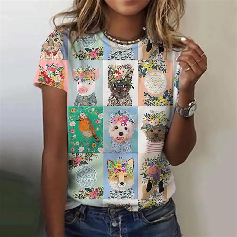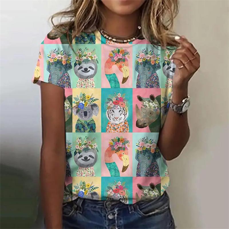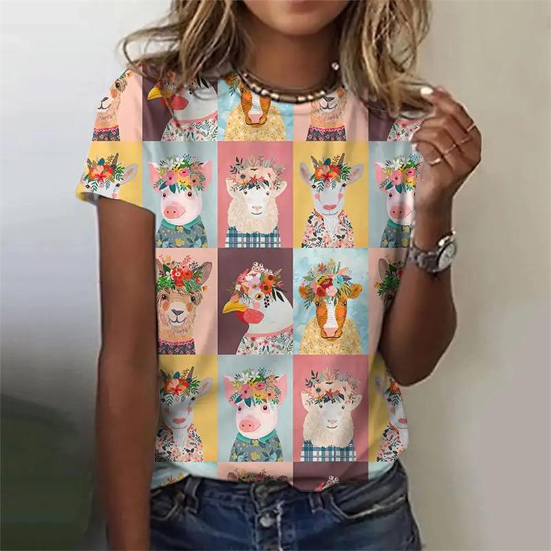 Женская футболка с принтом мультяшных животных Harajuku с короткими рукавами и круглым вырезом, повседневные футболки