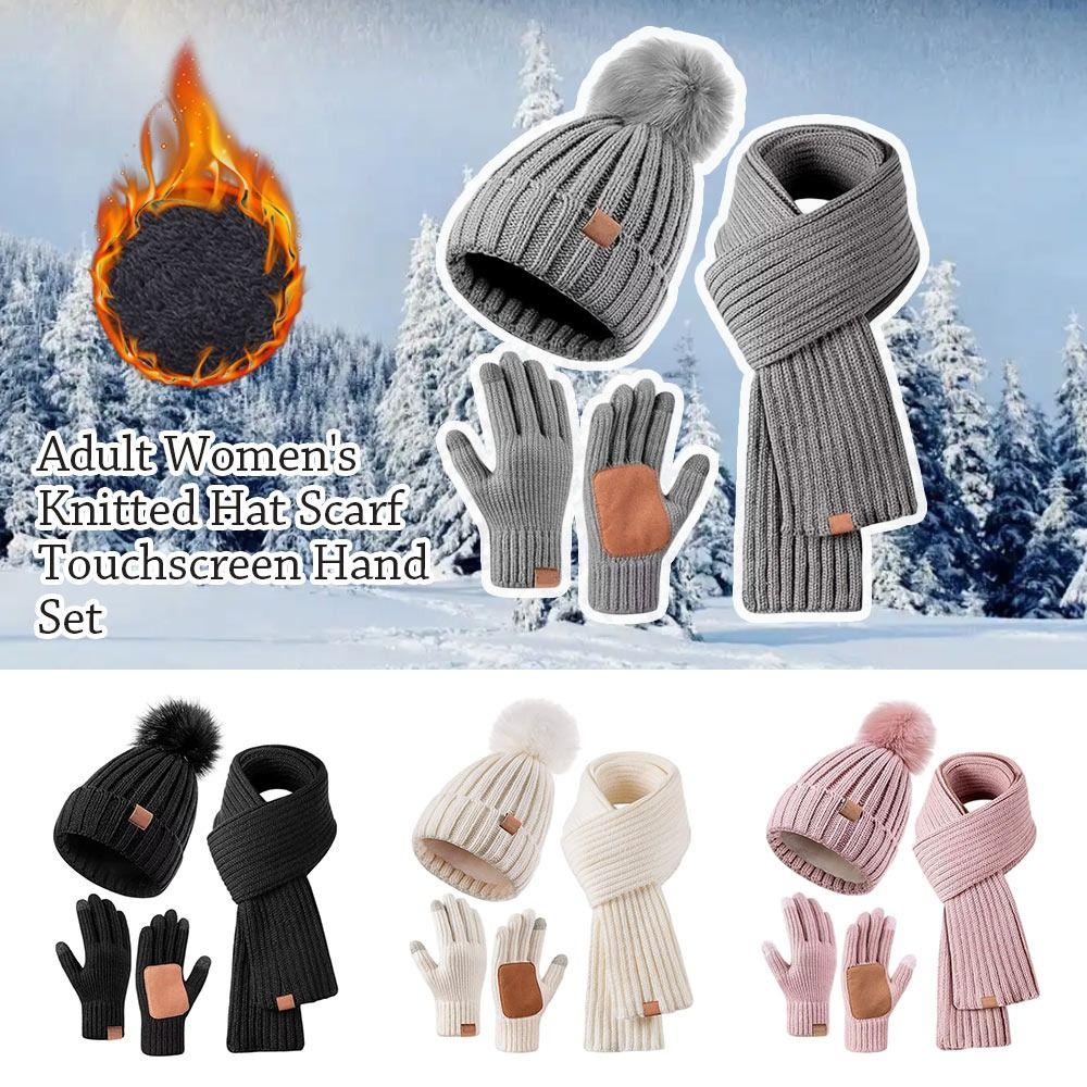 3 шт./набор Нескользящие женские шапки шарф перчатки набор Защита ушей Перчатки для сенсорного экрана для мужчин женщин
