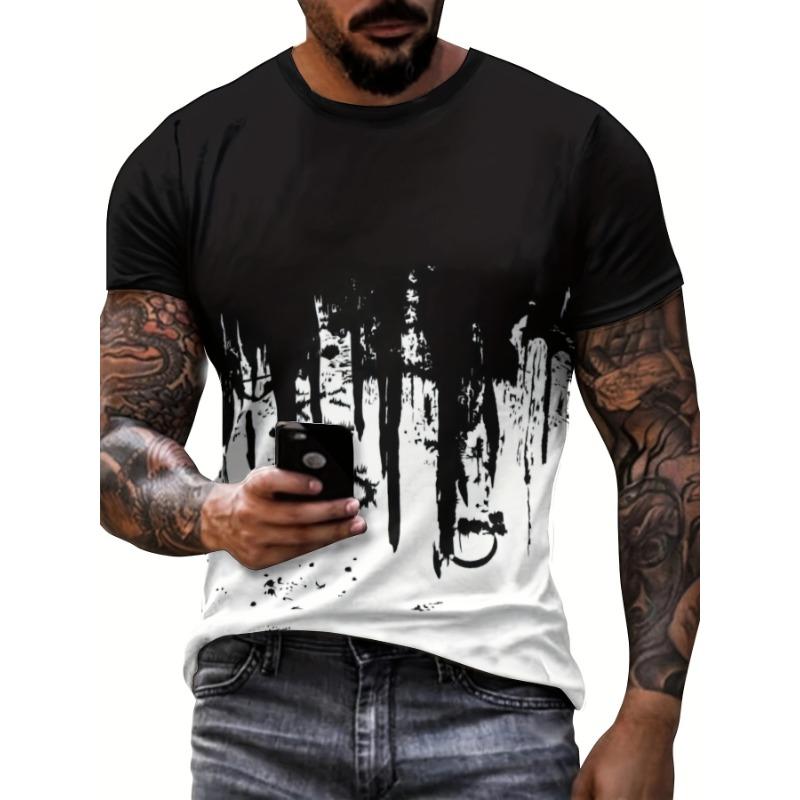 Мужская футболка с круглым вырезом и графическим дизайном для активного отдыха, повседневные удобные футболки с принтом в виде брызг для лета
