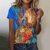 Летний топ с круглым вырезом и принтом павлина 3D, модные повседневные женские футболки с короткими рукавами