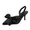 Летние туфли на высоком каблуке Женские летние туфли Атласные босоножки с бантом и цветком Baotou
