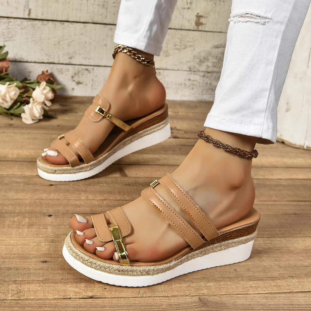 Женские тапочки на платформе, новые летние женские сандалии для отдыха на пляже, повседневные туфли на танкетке, прочные роскошные шлепанцы для женщин, Zapatos De Mujer