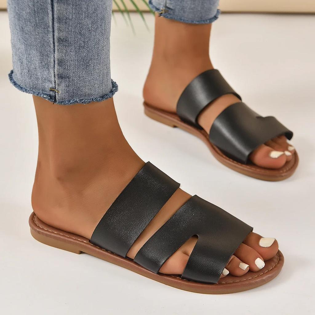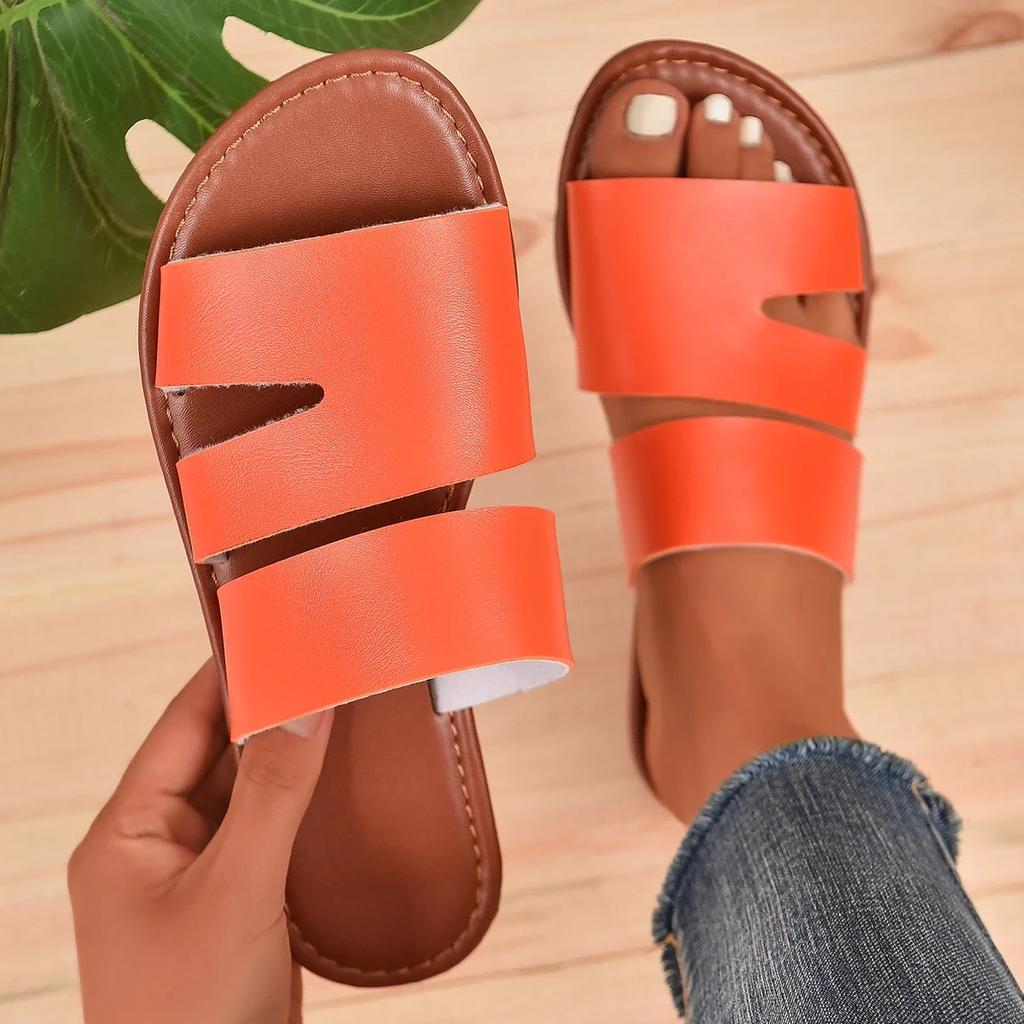 Женские тапочки, летние трендовые модные пляжные туфли, однотонные повседневные сандалии на плоской подошве, открытые тапочки для улицы, большие размеры, женские шлепанцы