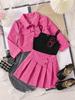 Модный костюм для девочек, весенне-осенний детский повседневный комплект из трех предметов: пальто с длинными рукавами и плиссированной юбкой