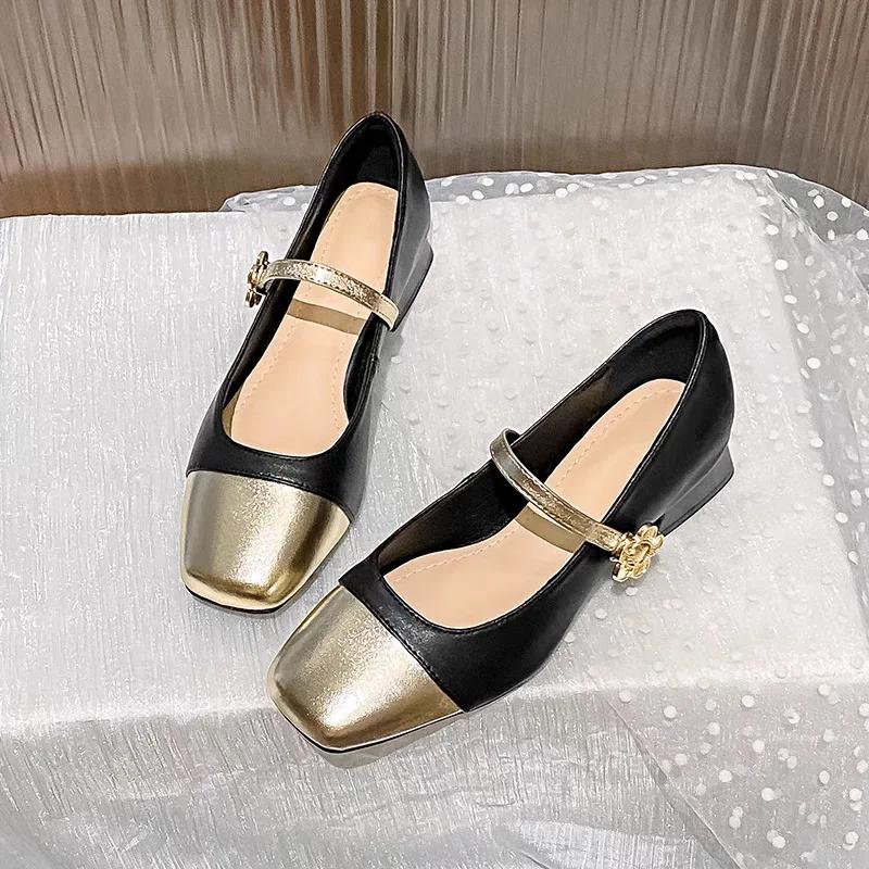 Туфли Мэри Джейн с квадратным носком для женщин Массивные сандалии с коротким носком Повседневные туфли на среднем каблуке Новая женская обувь Zapatos De Mujer