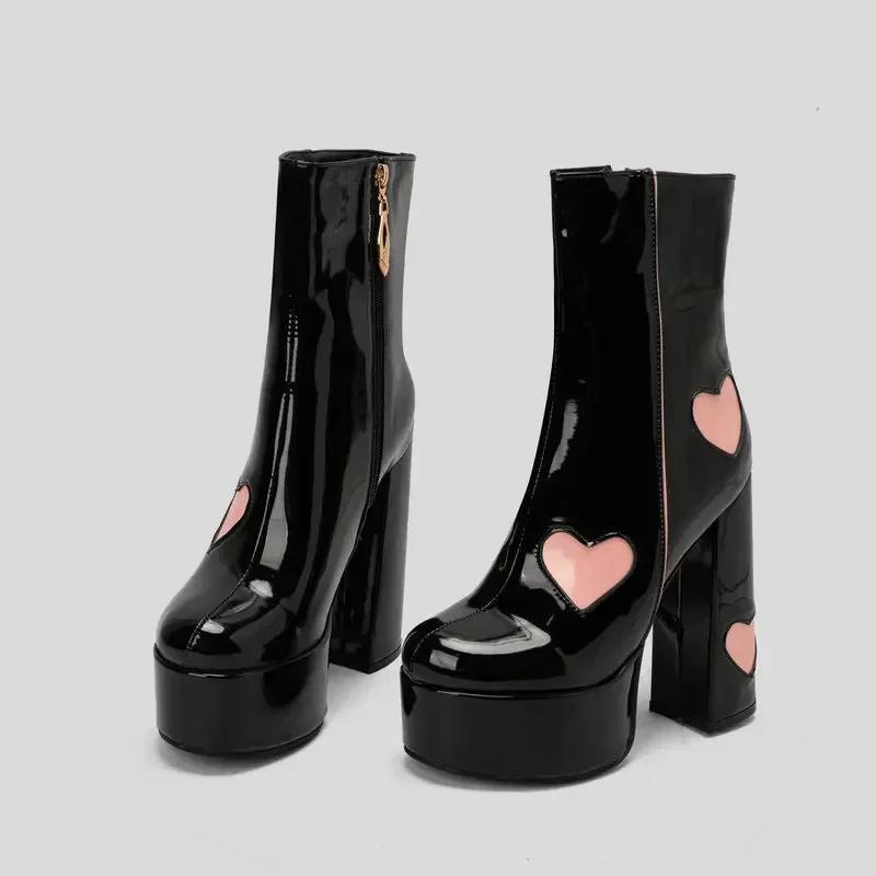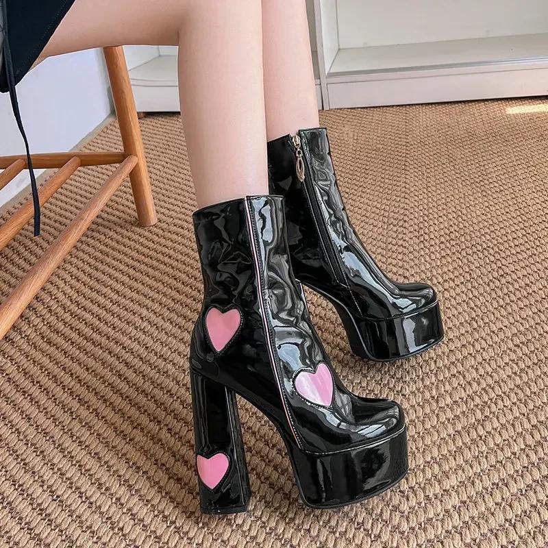 Женские ботильоны на высоком толстом каблуке, женские зимние новые модные ботинки на платформе с толстым каблуком, черные ботильоны в стиле пэчворк, женские