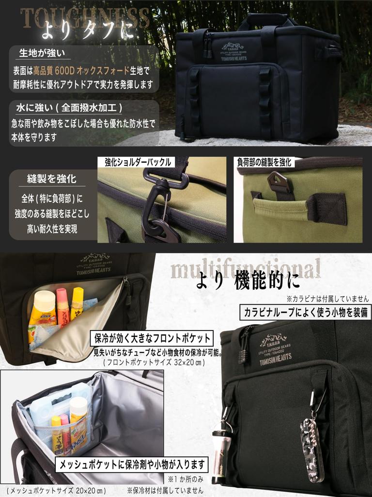 ◆ [Высокая прочность и полная водоотталкиваемость] Поверхностная ткань изготовлена из высококачественного Оксфорда 600D, который обладает превосходной устойчивостью к истиранию и разрыву, а также отличной устойчивостью к погодным условиям. Ткань практически не изнашивается, не расширяется и не сжимается, поэтому ее можно использовать в течение длительного времени.. Кроме того, вся поверхность водоотталкивающая, поэтому она не испачкается, даже если внезапно пойдет дождь или прольются напитки.. Общая прострочка также была усилена, особенно в местах, подверженных нагрузке, таких как ручка.. Для плечевой пряжки используется усиленная пряжка.. Он достаточно прочен, чтобы его можно было использовать на открытом воздухе.