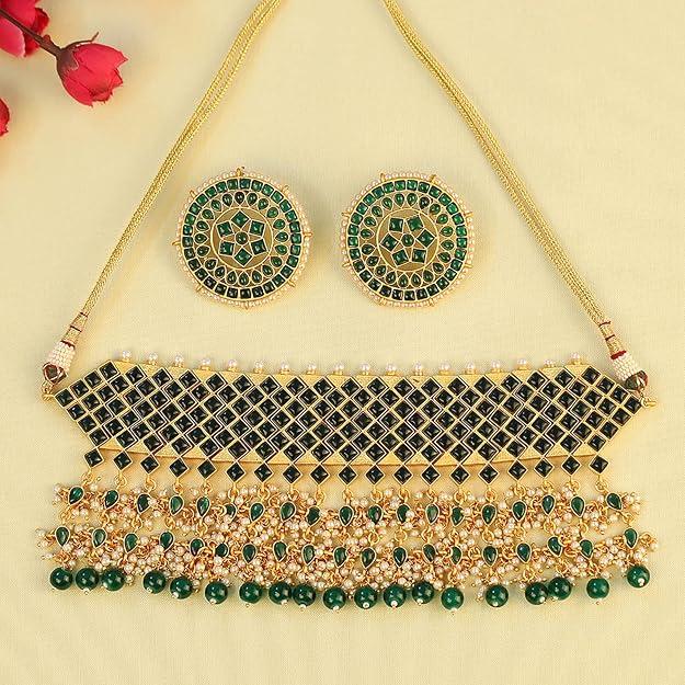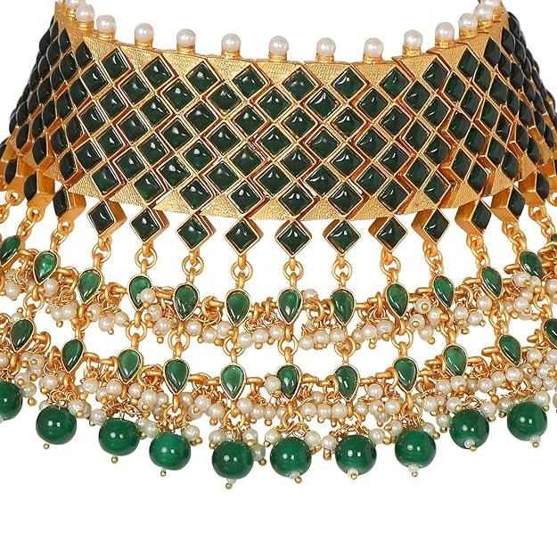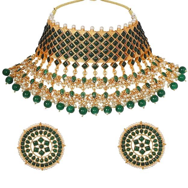 Традиционный комплект ожерелья-воротника из позолоченной латуни с синтетическим камнем и бусинами для женщин