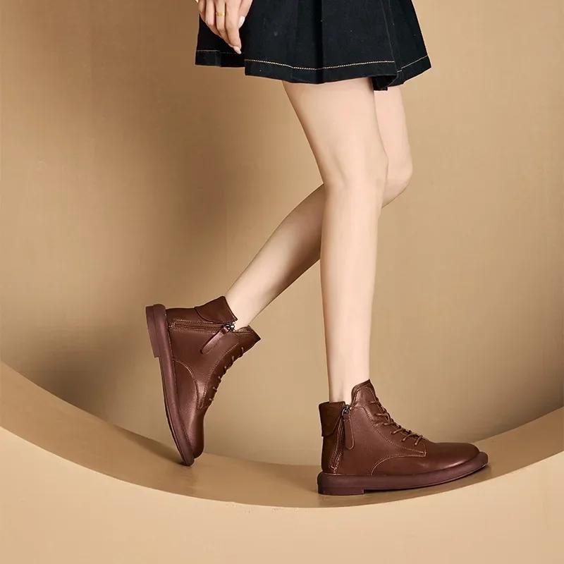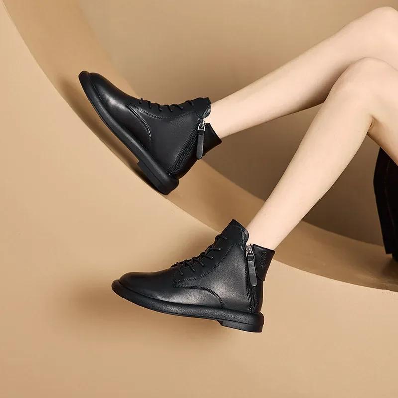 Роскошные женские винтажные ботинки осень-зима новые из натуральной кожи корейские короткие ботинки на молнии модная повседневная обувь на плоской подошве