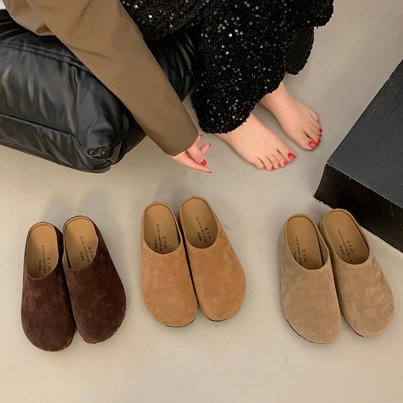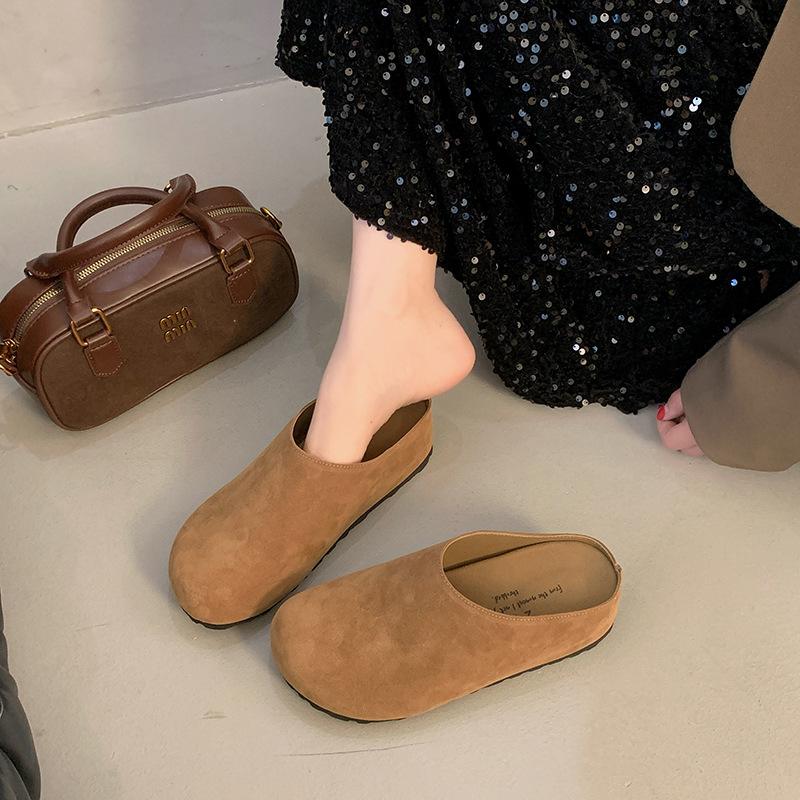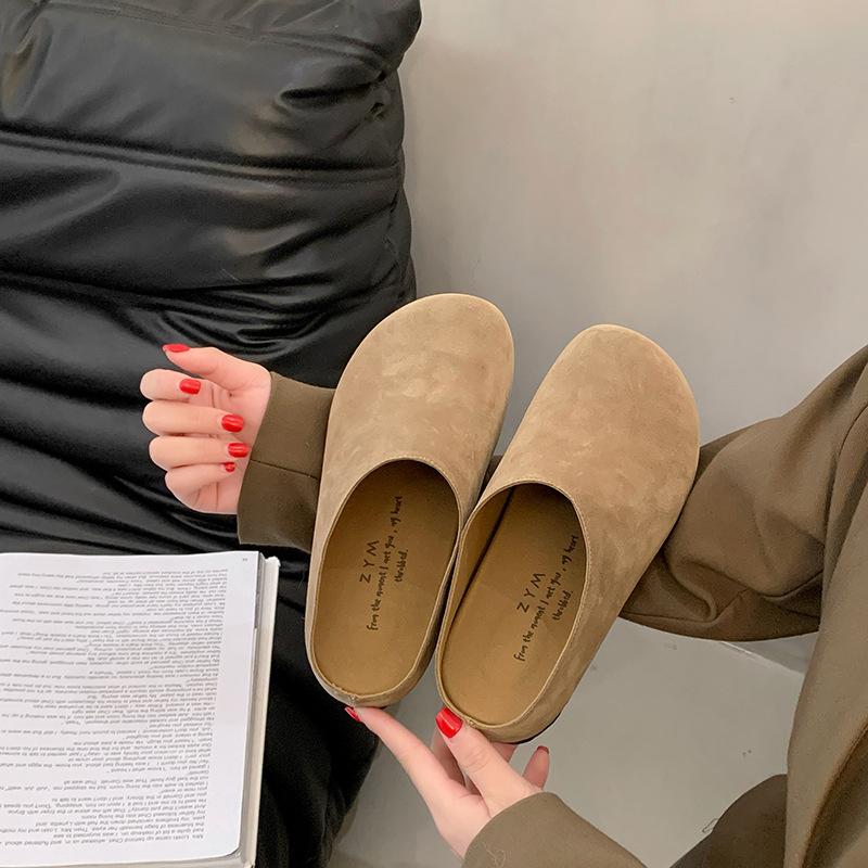 Тапочки Boken из матовой кожи в стиле ретро с одной педалью, женские, осень 2024 г., новые нескользящие повседневные тапочки-мешки