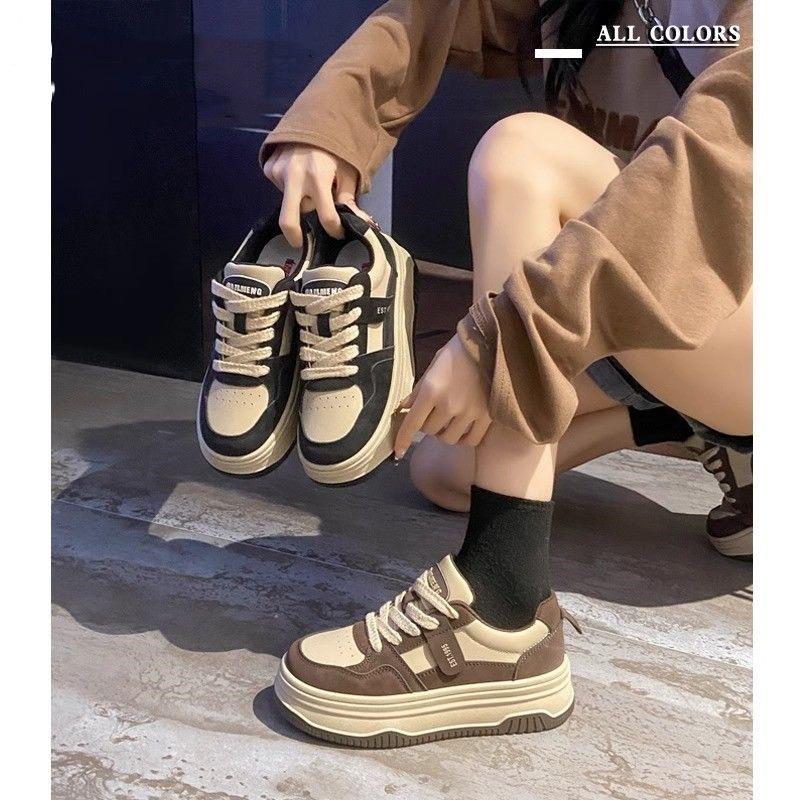 Thick baseplate shoes women's explosion 2024 spring and autumn new versatile little white shoes casual sports shoes Hong Kong style retro women's shoe