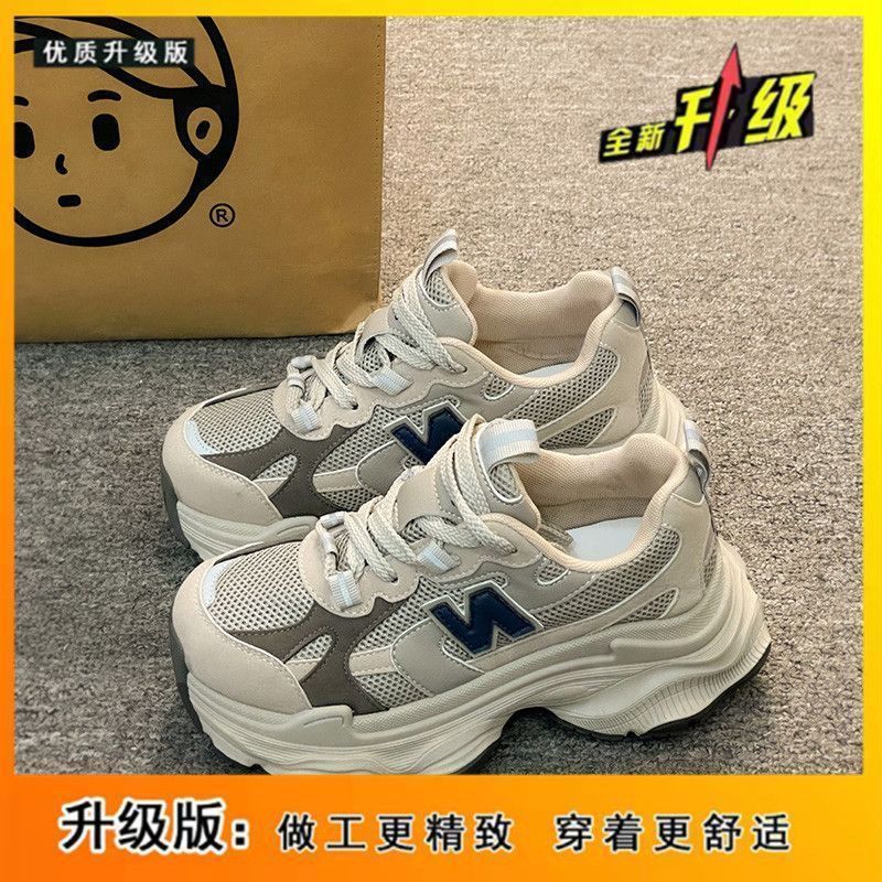 Обувь женская 2024 года, новая популярная осенняя тонкая дышащая обувь для пап, показывающая маленькую ногу, толстая подошва увеличивает рост, повседневная спортивная обувь