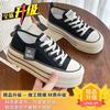 Туфли на платформе из парусины 2024 года, весна-лето, новая корейская версия, маленькие туфли в иностранном стиле на шнуровке с низким верхом, популярные туфли-буфы для женщин