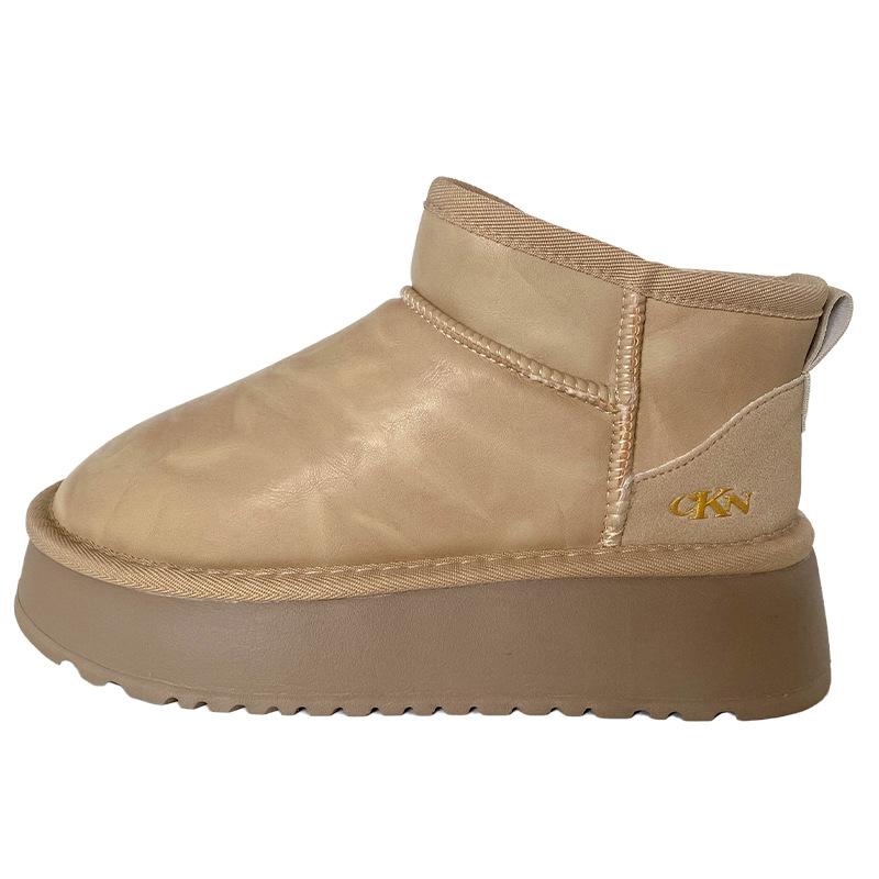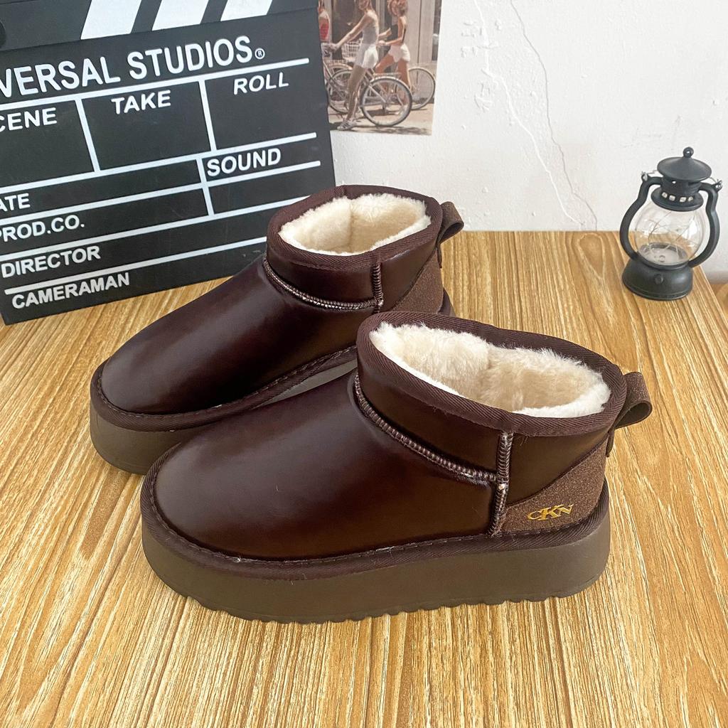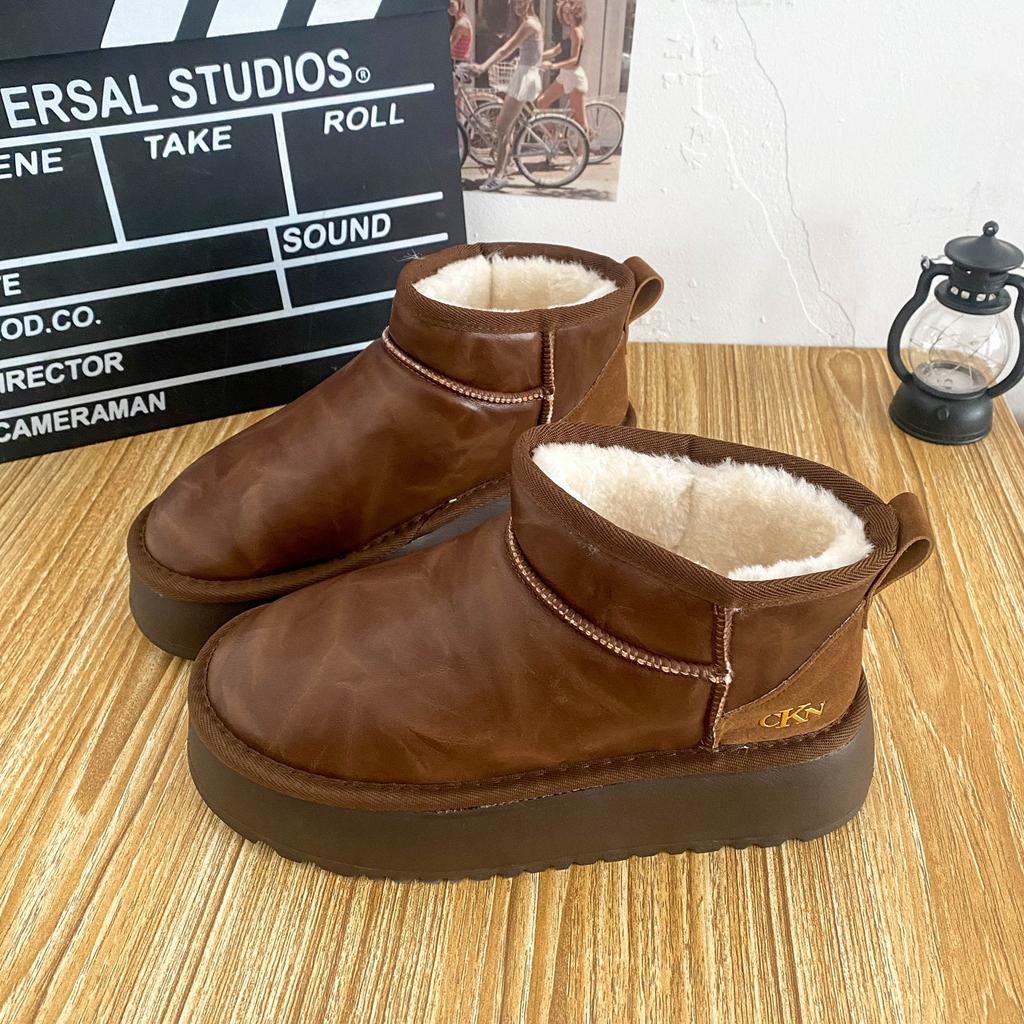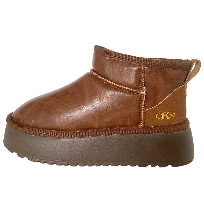 A9873 кожаные зимние ботинки на толстой подошве женские зимние водонепроницаемые и теплые 2024 новые короткие женские ботинки северо-восточная хлопковая обувь