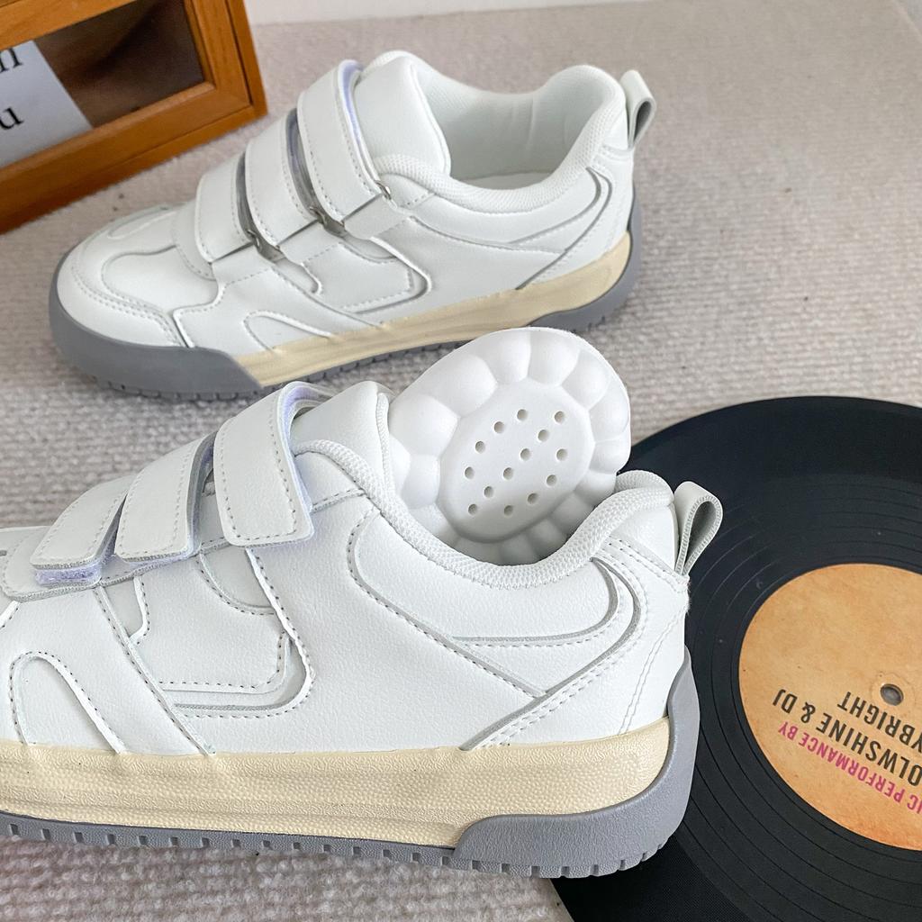 B-9383 латексная стелька/три липучки толстая подошва туфли женские нишевые 2024 новые кожаные белые туфли