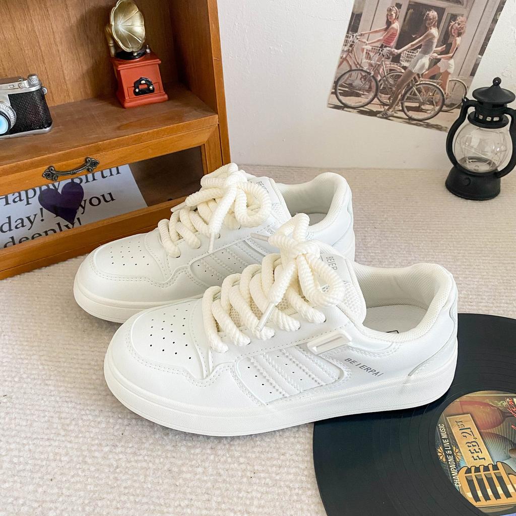 BE-6756 Latex insole/bread version leather surface white shoes women's 2024 new popular bumblebee board shoes