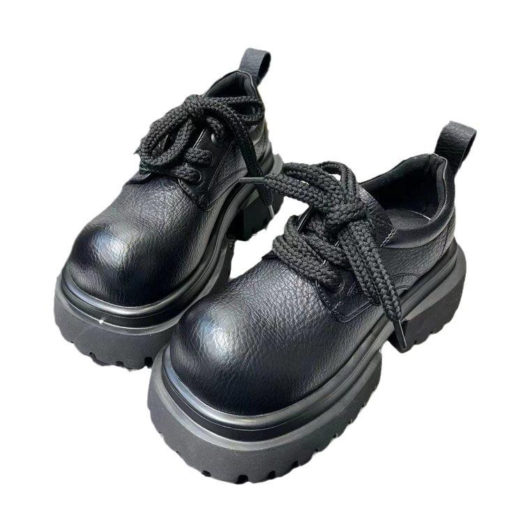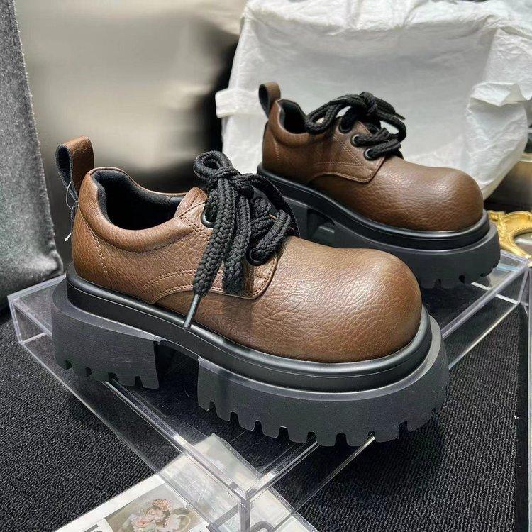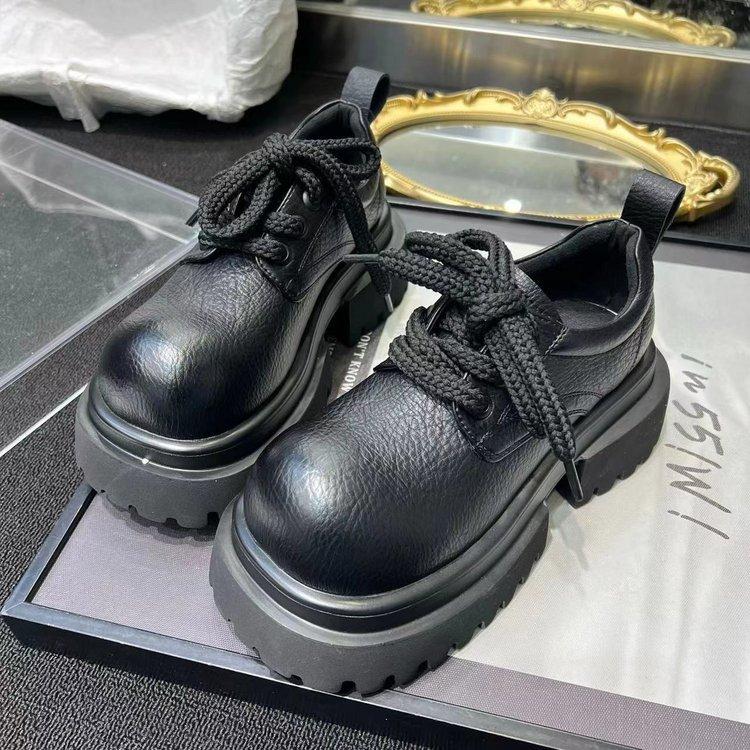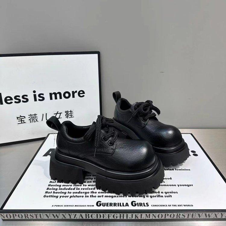 Женские кожаные туфли в британском стиле с большой головкой, осень 2024 года, новые туфли в стиле ретро-колледжа с квадратной головкой, на шнуровке, с завышенной подошвой