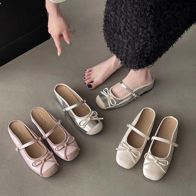 2024 летние новые модные тапочки Мэри Джейн с бантом, французские, с толстым дном, внутренняя часть, увеличивающая объем, полутапочки, женская верхняя одежда