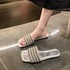 Модные шлепанцы на плоской подошве с открытым носком, новинка лета 2024 года, не утомляют ноги, пляжные шлепанцы со стразами, женская обувь