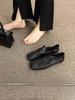 Весна 2024 новые туфли с квадратным носком в стиле ретро на плоской подошве, повседневные одинарные туфли из мягкой кожи на мягкой подошве, лоферы на одном педале, маленькие кожаные туфли женские