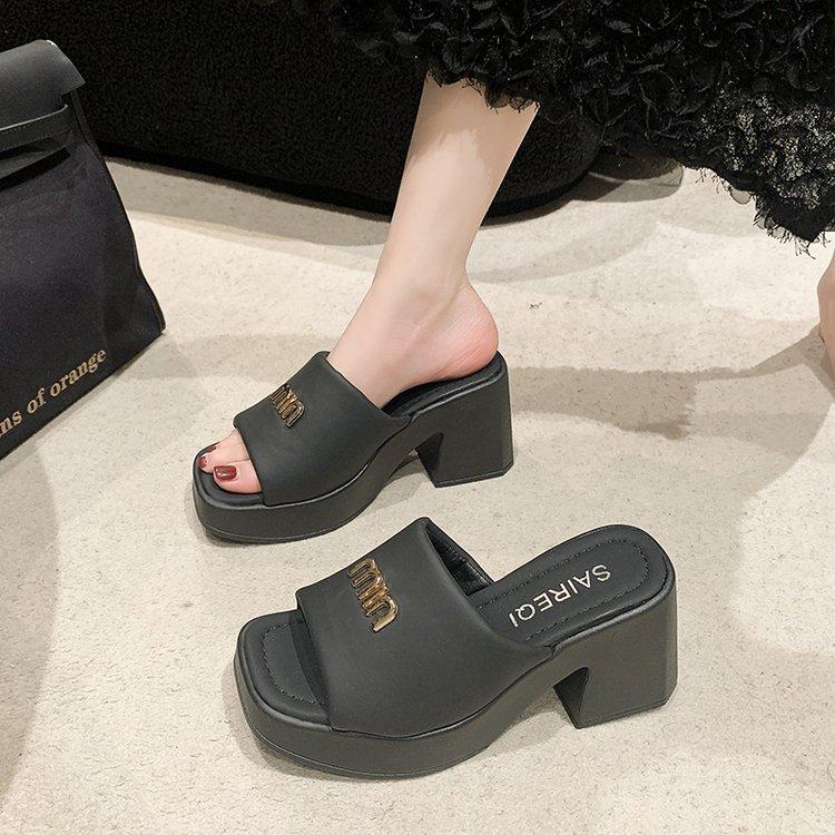 Тапочки женские летние 2024 новые сандалии с кексами, увеличивающие рост, толстая подошва, ретро, односимвольные пляжные классные тапочки женские